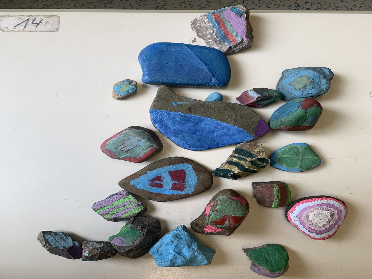 Das schlechte Wetter nutzen wir, um unseren nächsten Ausflug vorzubereiten. Dafür bemalen wir Pottsteine, um Spaziergängern eine Freude zu bereiten!
